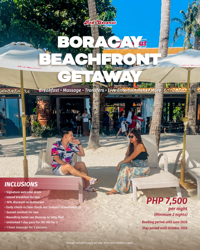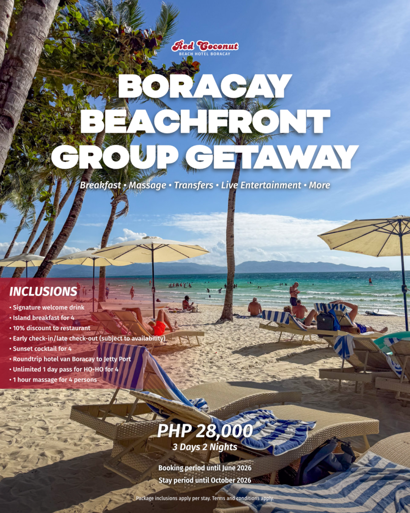Welcome to Red Coconut Beach Hotel Boracay, where your Philippine island experience comes to life. Since 1983, our iconic beachfront hotel has been your gateway to Boracay’s vibrant culture, breathtaking ocean views, cozy accommodations, captivating fire dance shows and live performances, expertly curated cuisine, and warm Filipino hospitality.